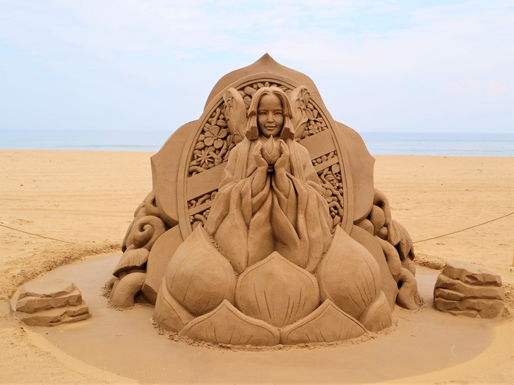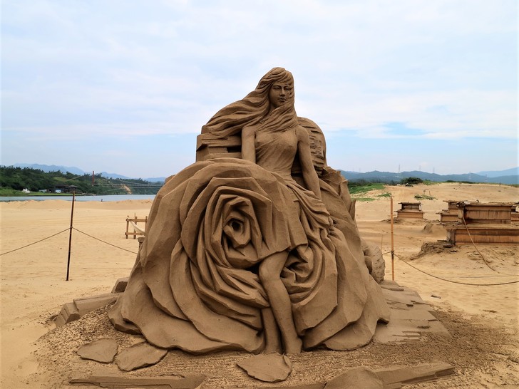 第一名--靈感(比利時),本雕刻品在不加任何裝飾下,以沙呈現女性栩栩如生的景象。