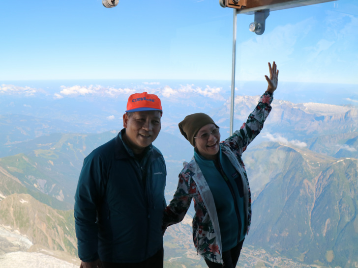 今晨,懷抱著騰雲駕霧的心境,搭乘兩段大型纜車從海拔 1035 公尺左右的霞慕尼,直登 3842 公尺的 南針鋒觀景台。
