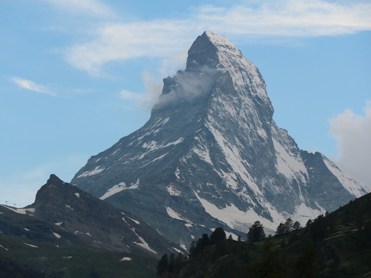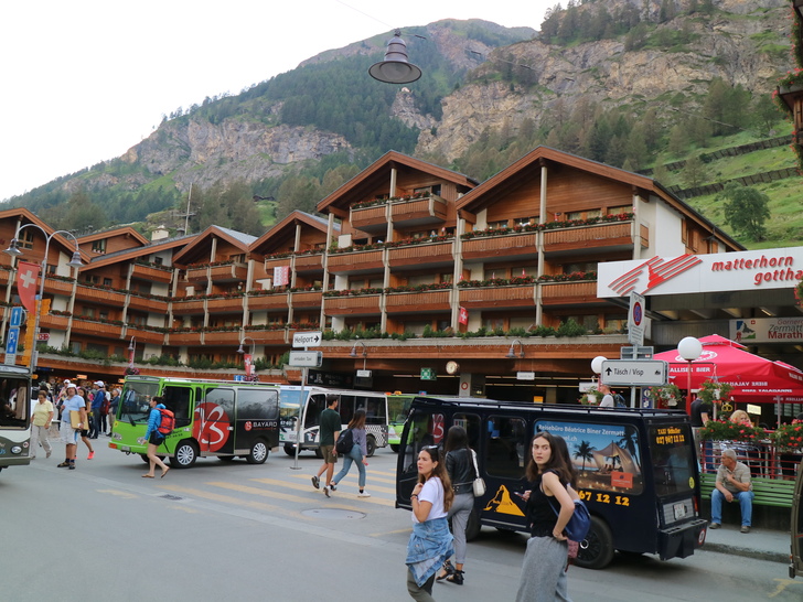中午吃了我們這趟旅遊的唯一一頓中餐,離開霞慕尼返回瑞士,在威斯普轉乘策馬特景觀列車進入瑞士最著名的度假村馬特洪峰冰川天堂。到達馬特洪峰車站,5點整剛好遇到牧羊人驅趕著羊群回家,(現已成為策馬特政府吸引觀光客的一個活動)。小葉先帶我們閒逛無菸的策馬特與明日要觀賞黃金日出的最佳地點。然後再回飯店check in 和用餐。這間飯店是經過特別設計的S飯店,內部的布置可看見許多巧思,但也因為這樣,有人住的並不習慣。