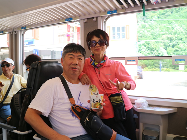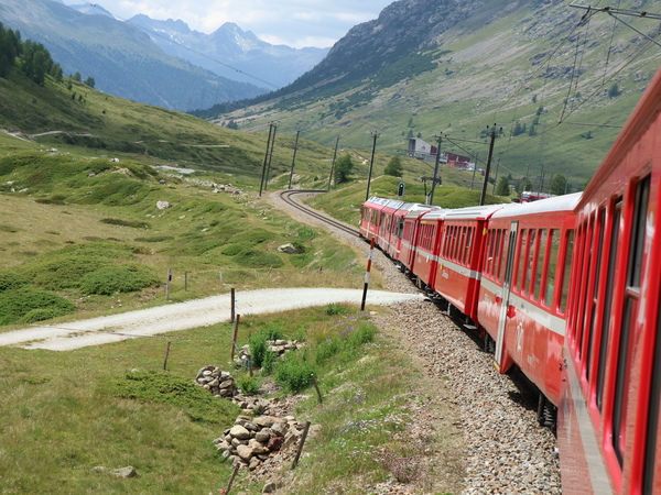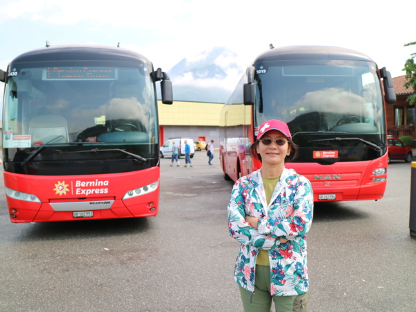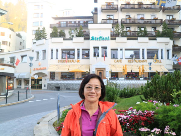 今早坐公車到盧加諾火車站附近的棕櫚巴士站,搭棕櫚巴士到提拉諾,棕梠巴士是伯尼納景觀列車的延伸,到提拉諾約要3小時,中間停留一站休息15分鐘。前半段幾乎沿著盧加諾湖和科莫湖前進,後半段進入義式村落寧靜的田園風光。風景雖然漂亮,但坐巴士拍照實在不容易,效果也不好,乾脆將美景暫留記憶或閉目養神。到提拉諾已過中午,提拉諾是瑞式和義大利邊界的小鎮,整條街幾乎都是披薩店,想覓食只能吃披薩了。接著搭乘歐洲海拔最高的高山鐵路伯尼納景觀列車,車程中, 最值得觀賞的是360度石橋環繞上坡的鐵道設計,可惜我們坐在車尾,無法拍到火車要上到橋墩前美麗的弧形曲線。女妖山附近的冰河湖伯「比安科湖」也是一大亮點,可惜皆一晃而過。列車在下午四點左右到達聖莫里茲。聖莫里茲曾舉辦過冬季奧運會,冬天來這裡的遊客比夏天還多。海拔1882公尺,是我們住過的BOTA山城高度最高的城鎮。小葉先帶著我們沿著聖莫里茲湖漫步,然後穿越天橋,搭了三個手扶梯,才到聖莫里茲的主要街道。我們今晚下榻的飯店還要往前走約5-6分鐘。今天坐了一整天的車,雖然天色還早,但check in後也只在飯店附近溜搭,懶得下湖邊散步了。