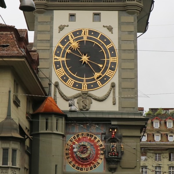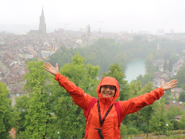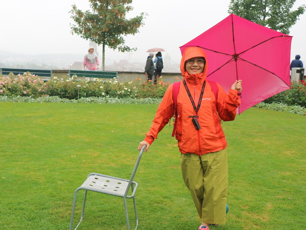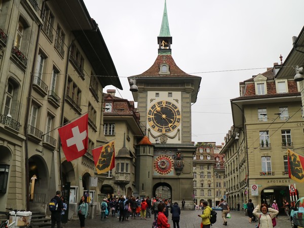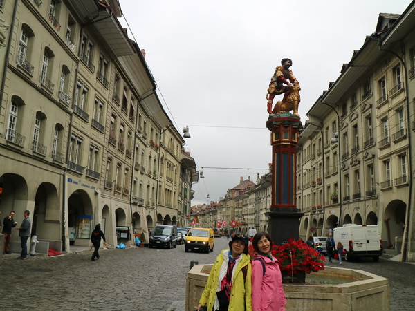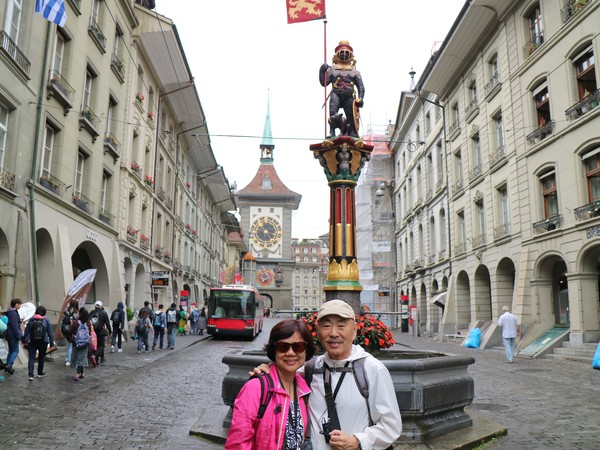飛機準點於清晨抵達蘇黎士,因為今天是午餐自理,在轉搭國鐵前往首都伯恩前,我們先在瑞士的連鎖超市COOP採買一些食物與水果。抵達伯恩火車站後, 轉乘新穎的輕軌電車前往眺望舊城區的制高點玫瑰花園,俯瞰被阿勒河三面環繞的浪漫古城。可惜伯恩用陰雨天來迎接我們的到訪,小小的玫瑰花園壟罩在煙⋯⋯雨朦朧中。伯恩的吉祥物--熊,也慵懶地躲在牆角邊。隨後悠閒漫步於世界遺產「伯恩舊城區」,參觀型各具特色、色彩斑斕的立柱噴泉,最後,來到伯恩的地標天文鐘樓,眺望刻畫近 500 年的時空歲月,沉浸在中古世紀的氣息之中。