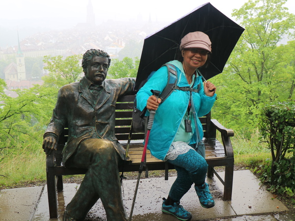 猜猜合影的銅雕是誰?---愛因斯坦,1905年他在伯恩提出了狹義相對論