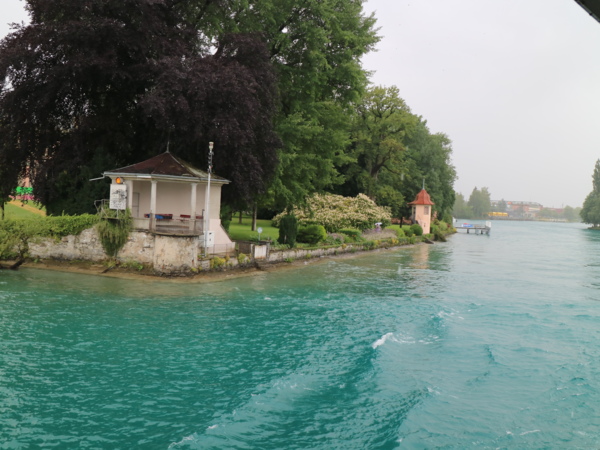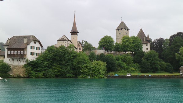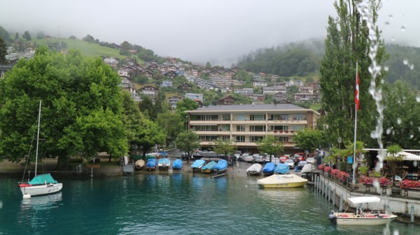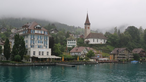 中午時分,我們將再度搭乘瑞士國鐵前往土恩湖畔的遊輪碼頭,搭乘土恩湖遊船,悠游瑞士最幽靜的湖泊--土恩湖。我們買的是頭等艙的票,所以大家都跑上2F的露天甲板,欣賞土恩湖的美景。因沒料到天氣會變冷,很多人的禦寒衣物都放在大行李,但還是忍著寒風欣賞湖畔風光。遊湖結束於茵特拉根,接著搭馬車遊覽茵特拉根市區。茵特拉根很繁華也有很多精品店,可惜因為下雨,無心漫步參觀。我們選擇搭公車轉搭火車到格林德瓦。格林德瓦是最接近少女峰的BOTA山城,和茵特拉根比起來,格林德瓦幽靜多了,但我們住在格林德瓦的兩晚,剛好遇到周末音樂演出,也是吵到快11點才得安寧。