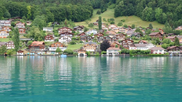 湖岸房舍倒映在水中,像極一幅風景明信片