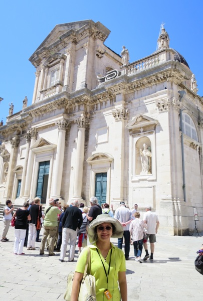 杜布尼克大教堂,右方牆面有聖布雷瑟雕像。聖布雷瑟自西元972年起就是杜布尼克的守護神。