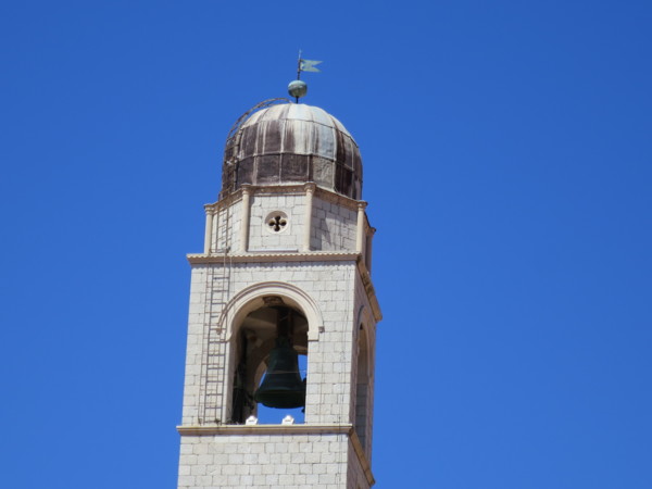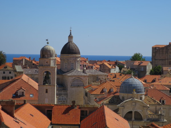 這三個圓屋頂各異其趣。前方灰色是聖布雷瑟教堂,後方黑色是杜布尼克大教堂,中間是鐘塔。