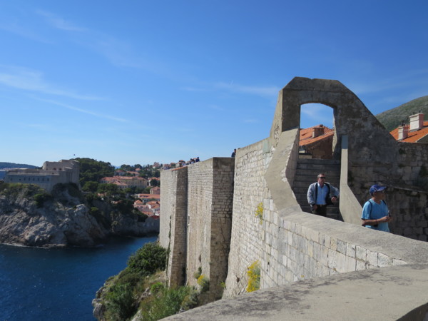 杜布尼克的城牆雄偉厚實,靠海的那面,城牆厚1.5~3公尺,靠陸地的這面,厚達6公尺