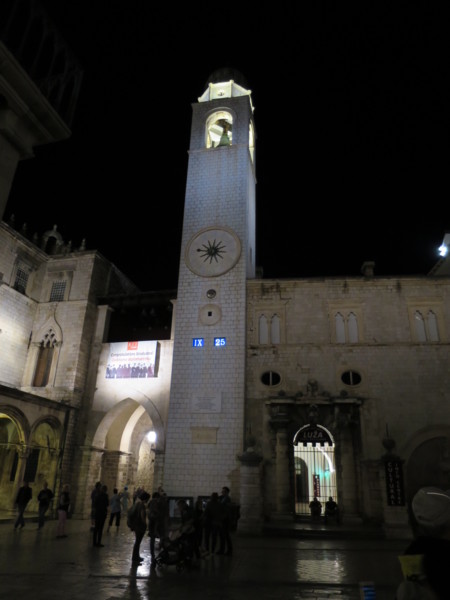 杜布尼克鐘塔建於1444年。聽說整點報時,還會出現兩士兵以鐵槌敲鐘。