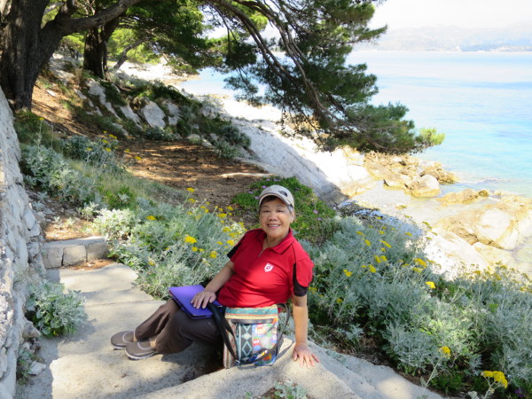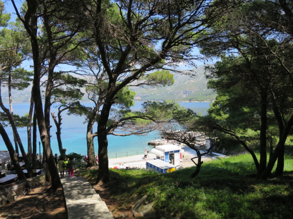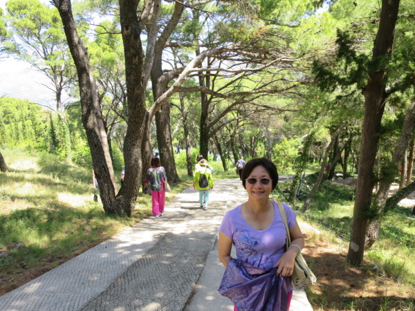 今日是在克羅埃西亞的最後一天,早上在飯店悠閒的享用早餐,隨後驅車前往卡弗塔特(CAVTAT)。途中司機在公路高點讓大家下車,再度回味一下杜城的美麗。卡弗塔特在杜布洛尼克東南方20公里處,是由群山和許多小海灣所環抱的天然良港。行程中的「巴洛克風格的聖尼古拉斯教堂及文藝復興風格的王公宅邸」並無印象有參觀到,只記得領隊帶我們走一條濱海松林步道和參觀「雷闕奇家族墓園」。墓園座落Cavtat最高處,被海、杉木、柏木和棕櫚所環繞,是雕刻家Ivana Mestrovica梅史托維契 於1921年完成的。基於對墓園的尊重,並沒有拍下任何照片。倒是濱海松林步道的確是一條美麗的步道,值得來回多走幾趟。