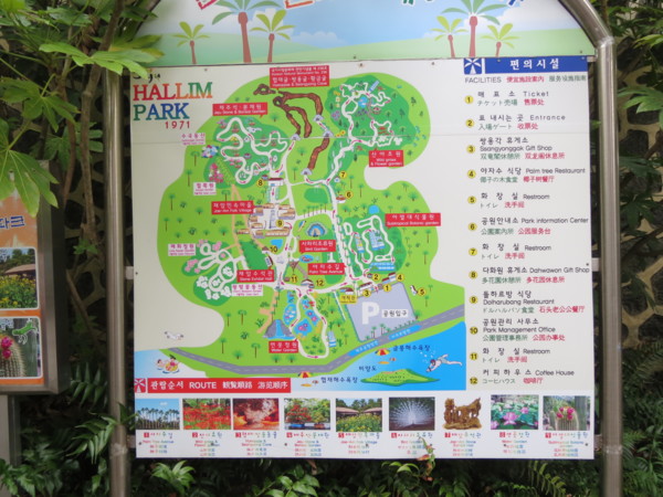 我們的遊園路線:椰子樹路 → 挾才.雙龍窟 → 濟州石.盆栽園 → 財岩民俗村 → 鳥園 → 財岩水石館 → 蓮花池庭園 → 亞熱帶植物園