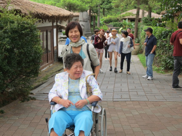 因為園區遼闊,為避免老媽過於疲勞,事先備有輪椅推送