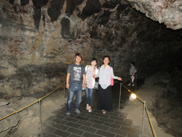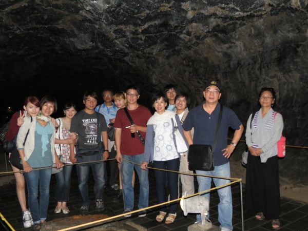 挾才窟---250萬年前漢拏山一帶火山爆發,由流出來的岩漿所形成的黑色熔岩洞窟,因滲入石灰水的關係,轉而變成帶有金黃色的石灰洞窟