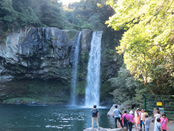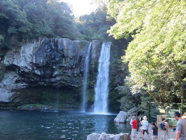 濟州島有三大瀑布:天地淵瀑布、天帝淵瀑布、正房瀑布。三個瀑布各有特色,台灣旅行社通常在「天地淵瀑布」與「天帝淵瀑布」二者中擇一安排。個人認為天地淵瀑布最容易親近,景緻也最優。建議停留時間為70分鐘。