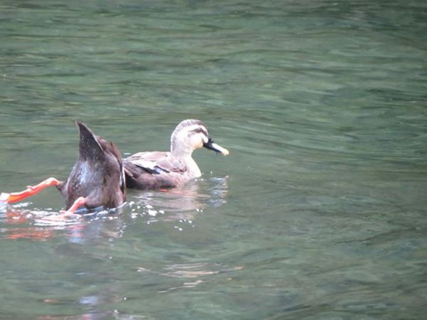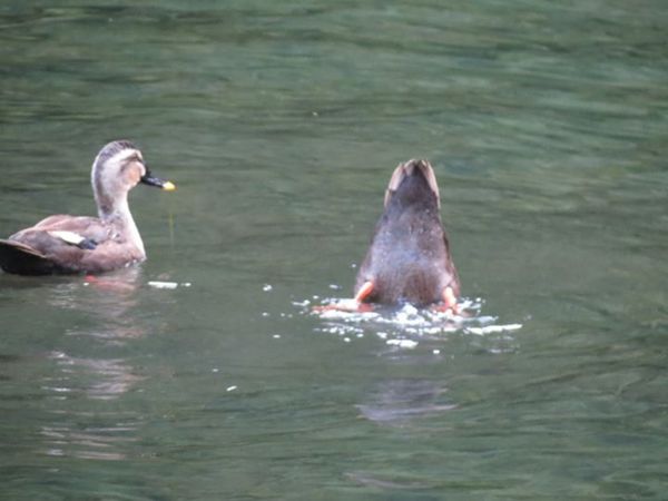 水鴨潛入水中抓魚