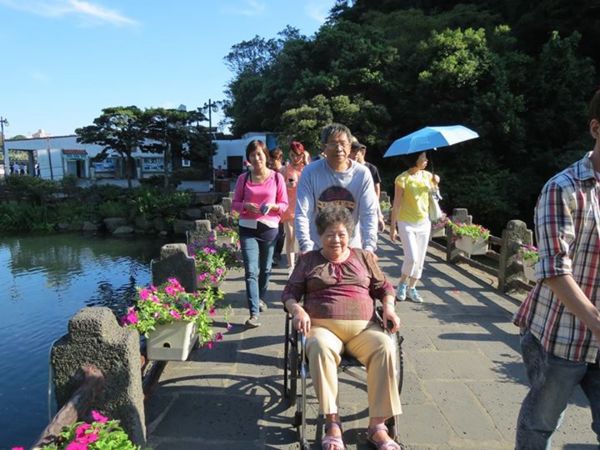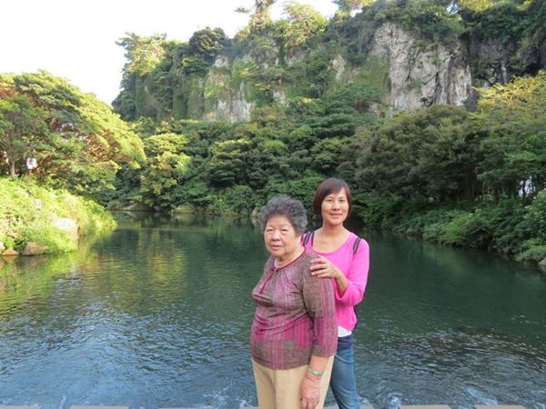 從入口到瀑布慢慢走約15分鐘,為節省體力,還是借個輪椅給老媽坐