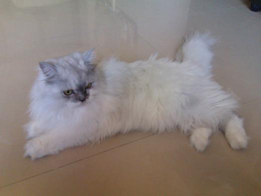 既來之,則安之。還是再看看還有沒有其他有緣的呢! 到其他狗狗房間找了找,也來到了貓咪區。看到一隻大型成貓金吉拉,白毛上有一層淡淡的灰,因為金吉拉的原意就是「漂浮」的意思。