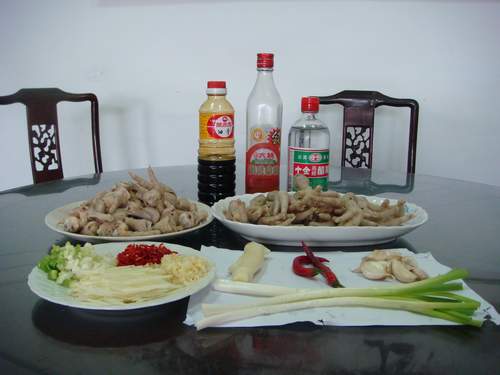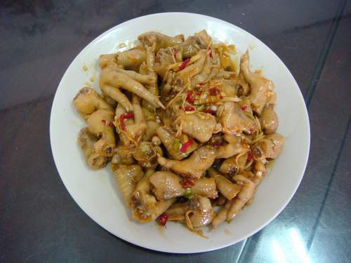 做法:將調味料加入剁成小段的雞爪拌勻.