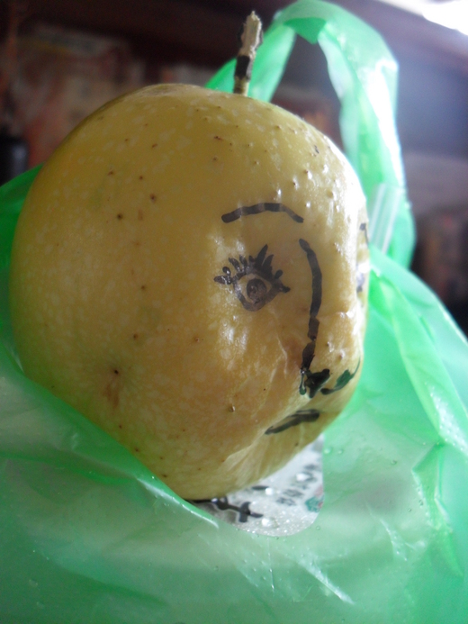 事鄰居 種的只有一粒!放一段時間了!!粉耐放!!我就好奇的把它濘成人臉!!好玩!!我愛畫畫!!與創作拉!!!