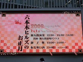 原本元旦第二項節目是到赤阪溜冰, 但老公說他小腿肌肉好痛, 唯有取消**。散場後兩點多, 回家又倘早, 於是留在六本木Hills逛逛, 看了一場和太鼓表演, 吃過了午飯後, 才施施然踏上歸途.
