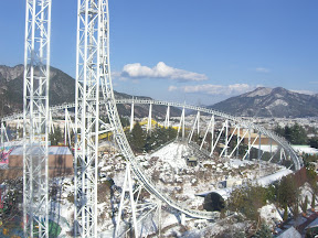 一早定了巴士套票(來回東京車票兼入場券, 才6000日元), 為了爭取遊玩的時間, 我們凌晨五時出門, 十時來到富士急。沿途喜見到遍地白茫茫一片,皆因前日關東地區性下大雪, 樹上地上車上屋上皆是厚厚的積雪, 滿心高興以為今次除了可以狂玩過山車之外, 還有雪景欣賞, 做雪人, 真是不枉此行...