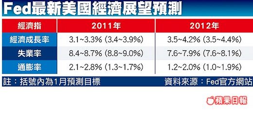 柏南克承認,Fed調降美國經濟2011年成長目標,主要反映上季成長較預期疲弱。他雖沒看到正式報告,但第1季成長率應低於2%,惟如此疲態應該只是暫時的。