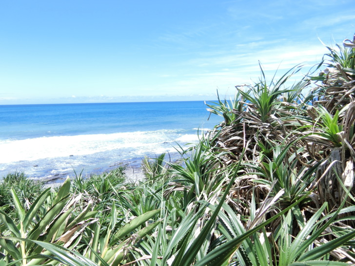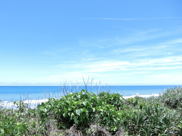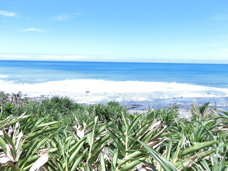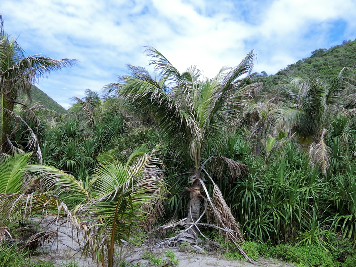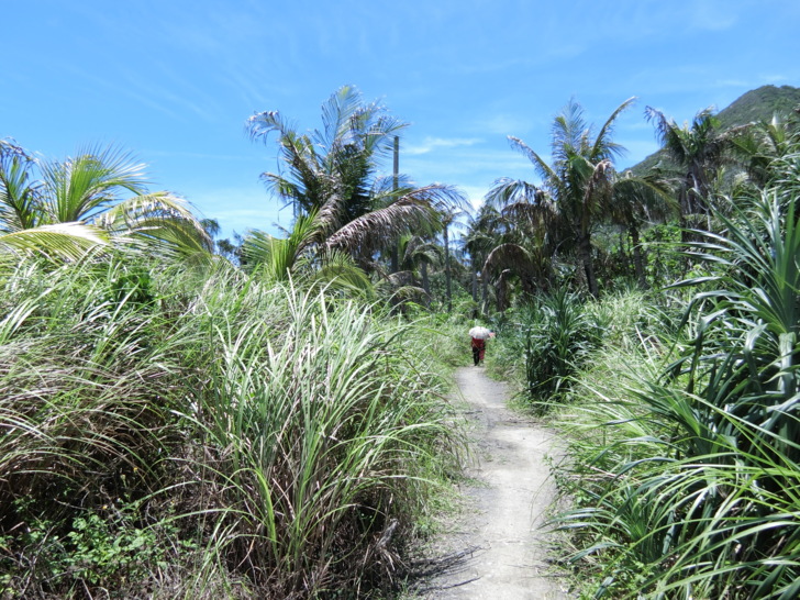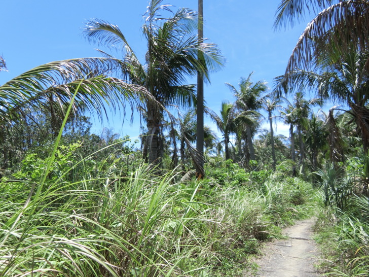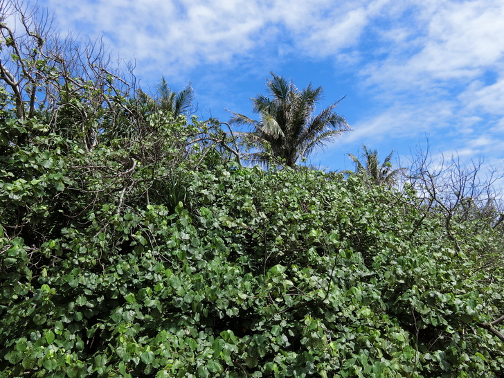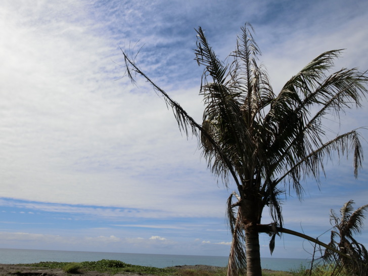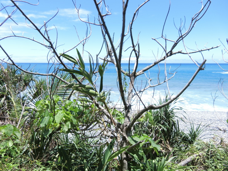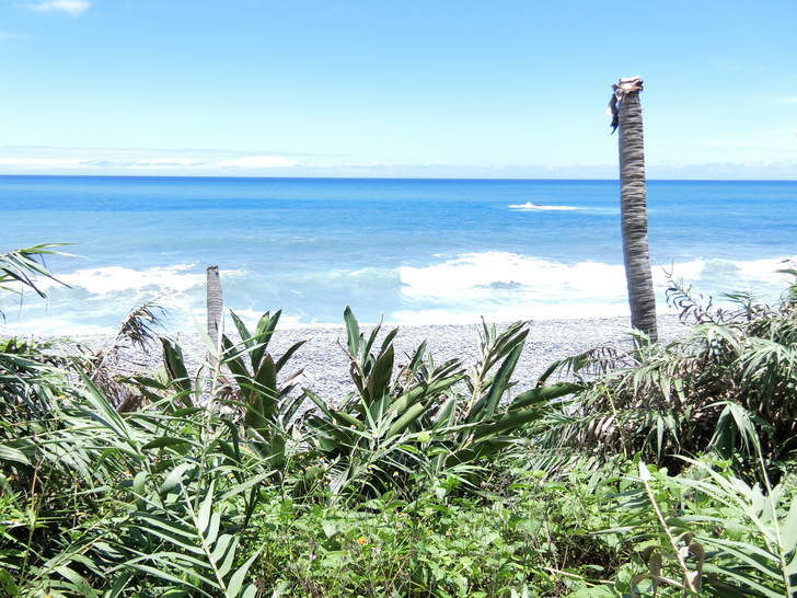 大自然的驚人力量,路程中也能看見許多生命力旺盛的海濱植物,像台灣海棗、海埔、魯花樹、草海桐,整株長滿尖剌的老虎心