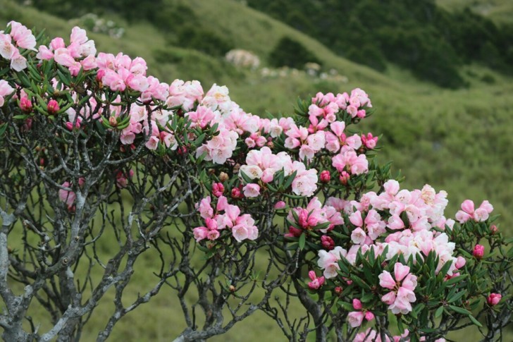 合歡山區高山花卉今年疑似受到暖冬影響提前開花,小奇萊、合歡北峰、東峰及石門山、石門尖山等步道旁的玉山杜鵑陸續綻放,讓人們的假日多了一處出遊地方。