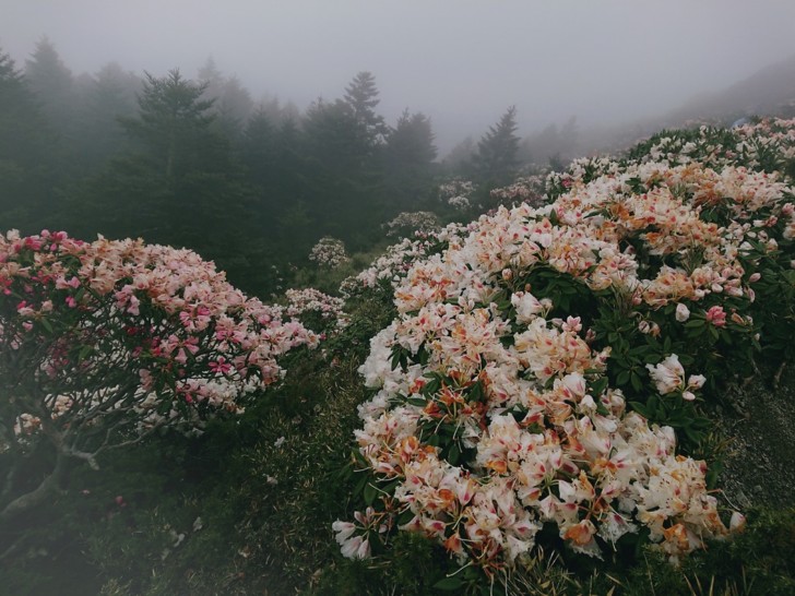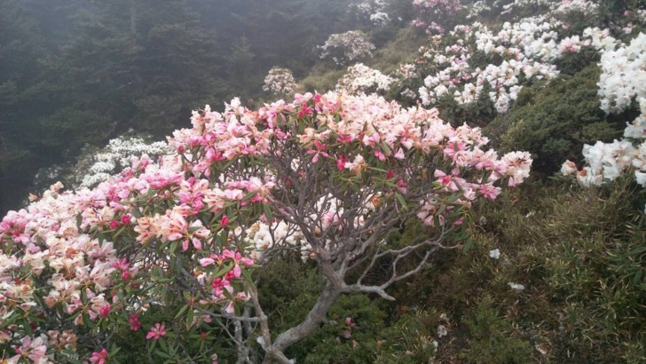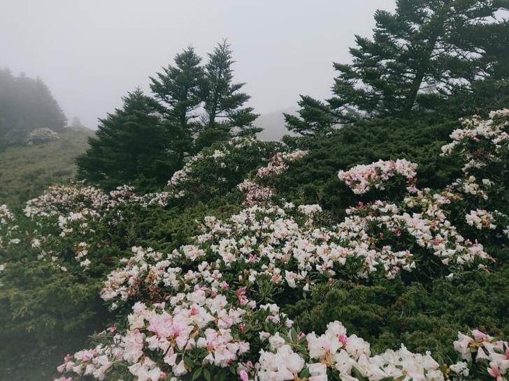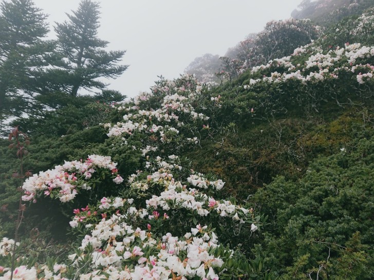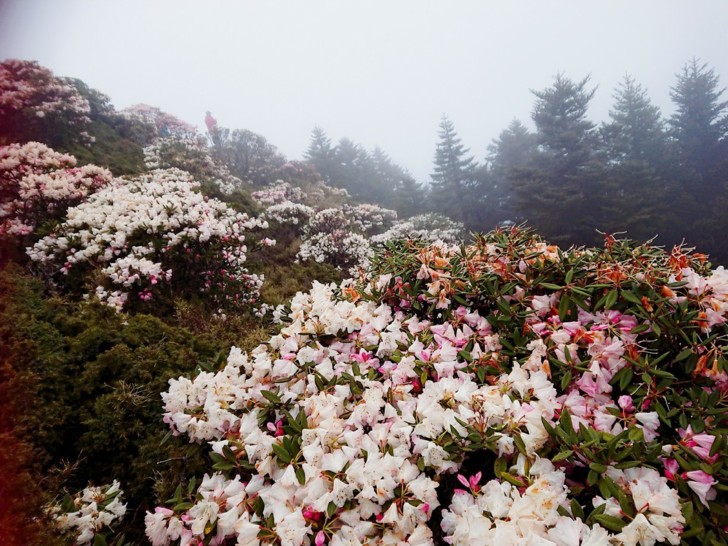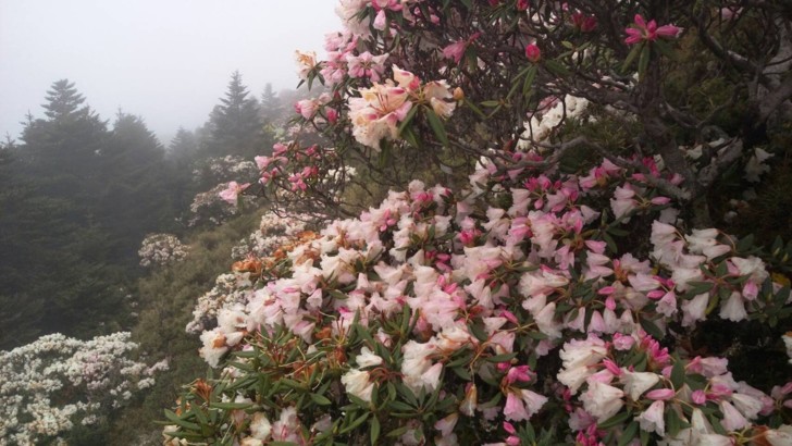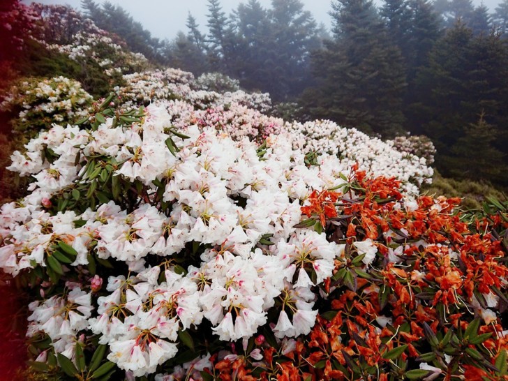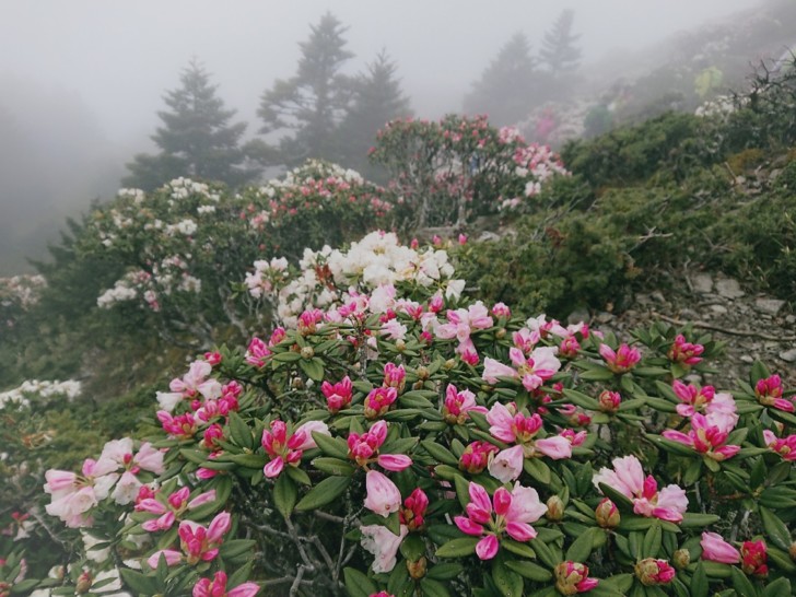合歡南峰及石門山等步道旁的高山杜鵑綻放。