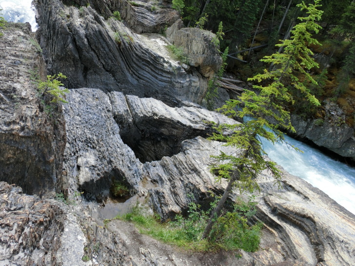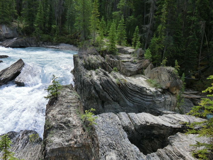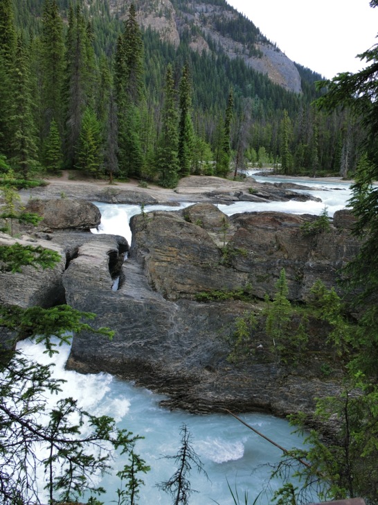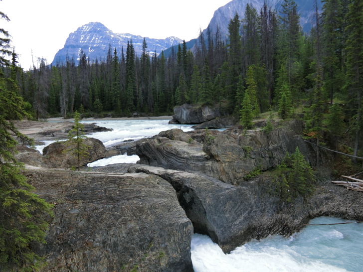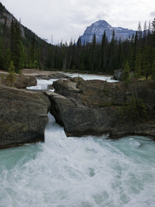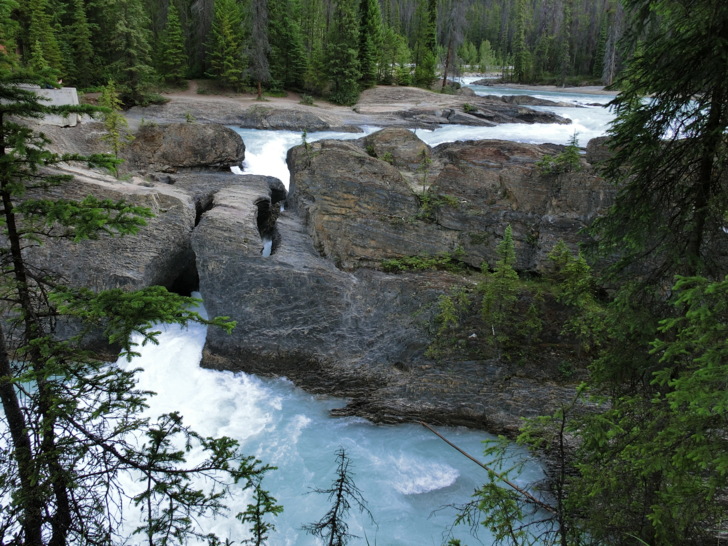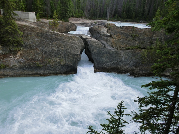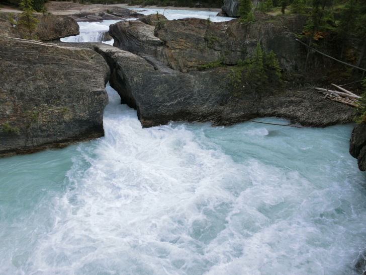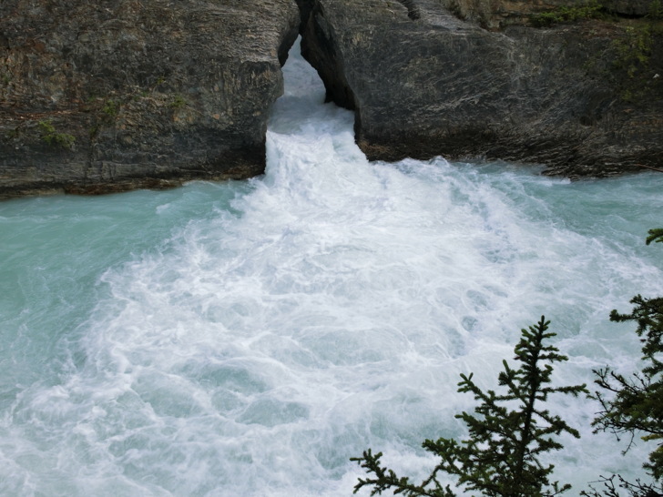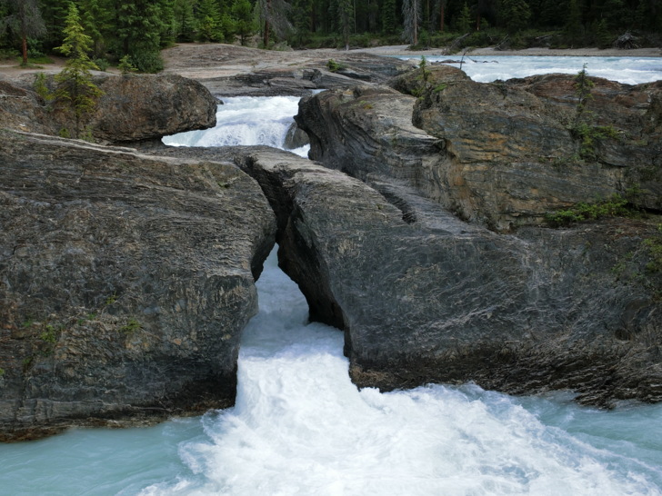 這是「踢馬冰河」與岩石的戰爭所造成的,原本應該是瀑布,但卻因為水流貫穿岩石造成山洞讓冰河由石頭下方而流出上頭未能穿透的部份而形成的自然橋。