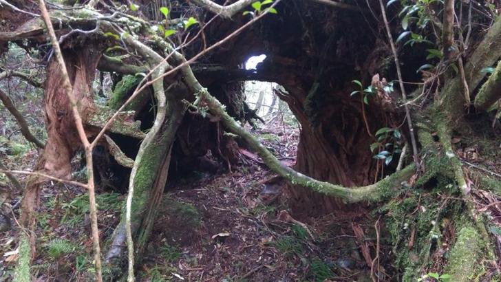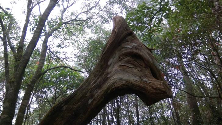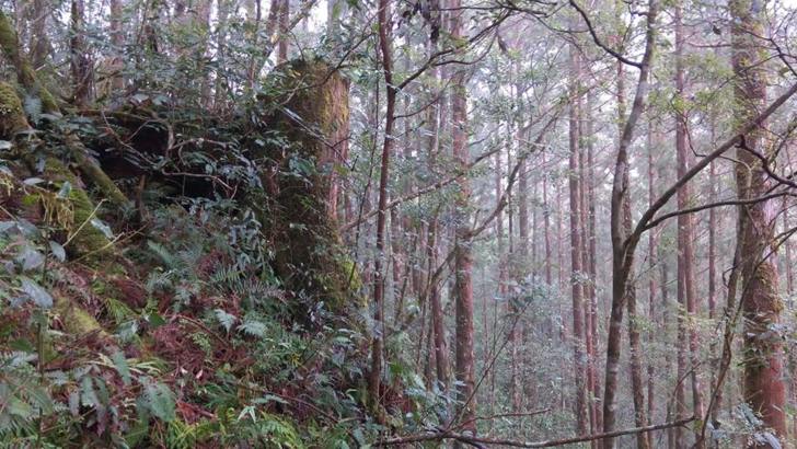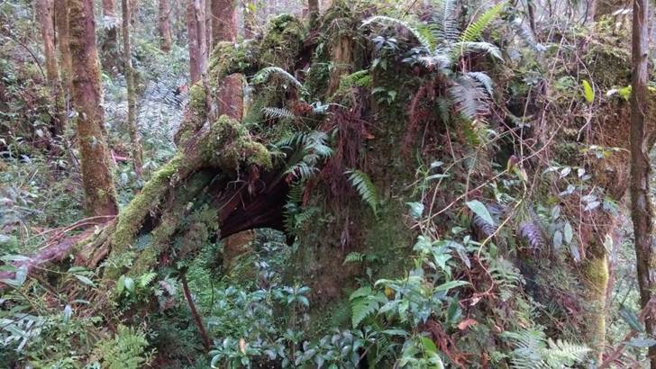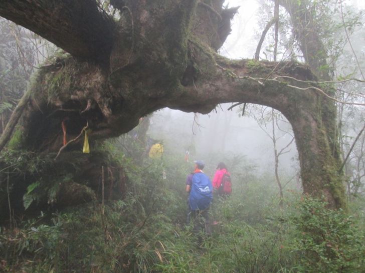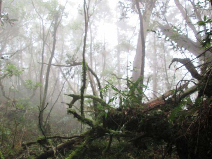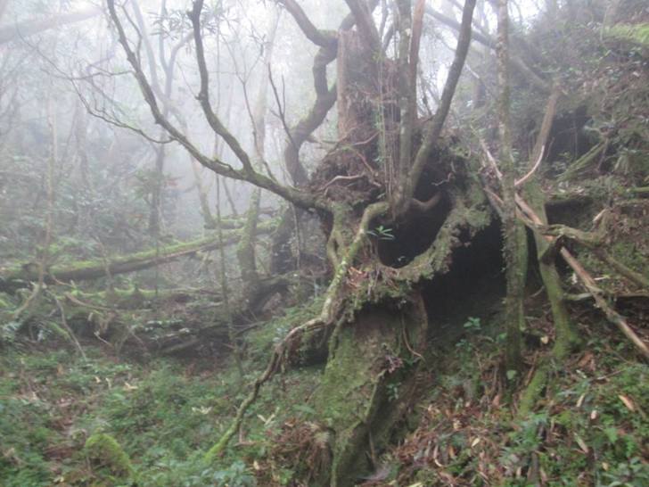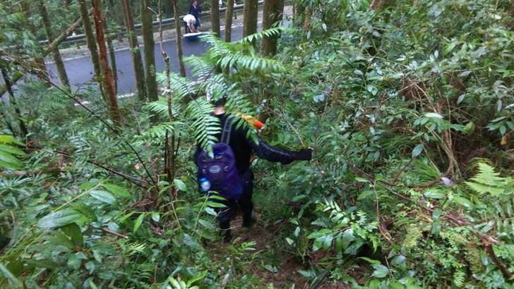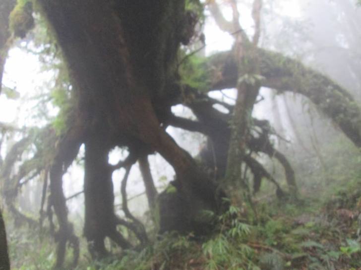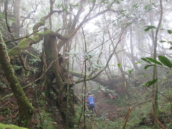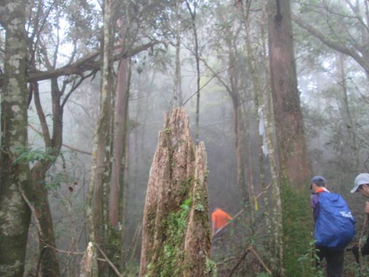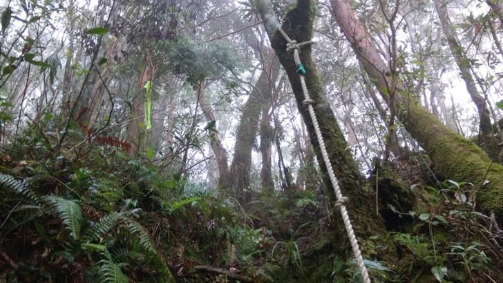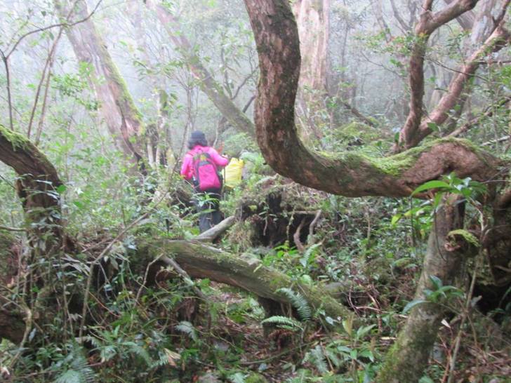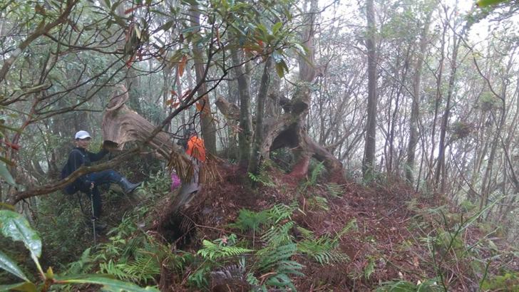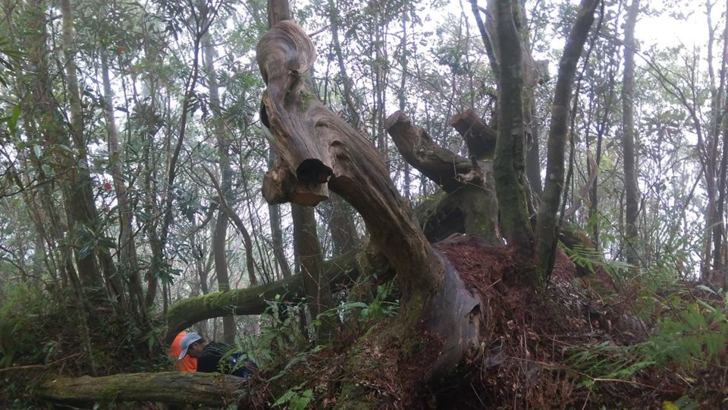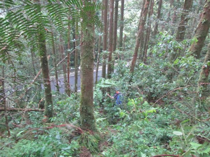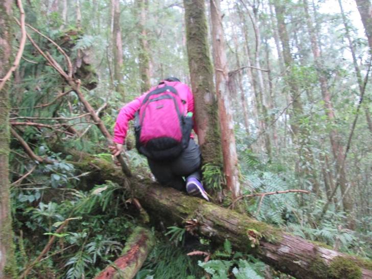 在後面也拿起鐮刀再清除,不好走啊!樹根多又滑,我們在倒下大樹中,鑽來鑽去,