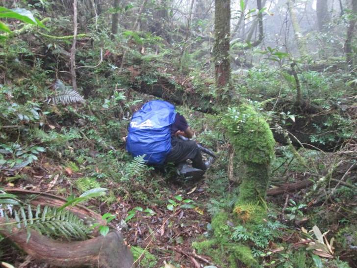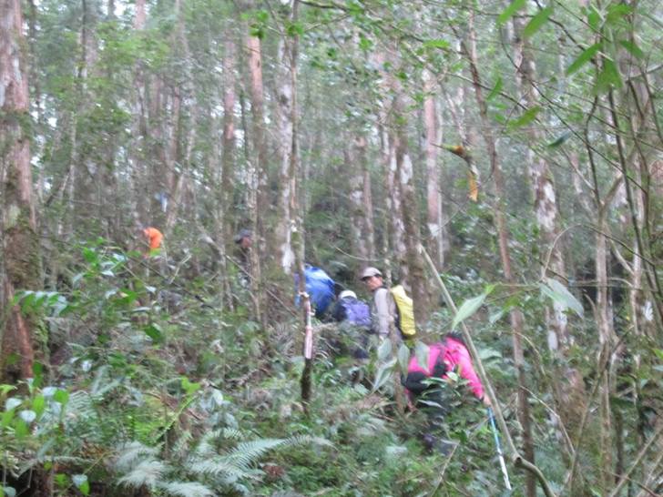 蘇迪勒颱風之後,就沒登山客來過吧!張領隊在前面辛苦除路障,找路,素雲姐壓隊