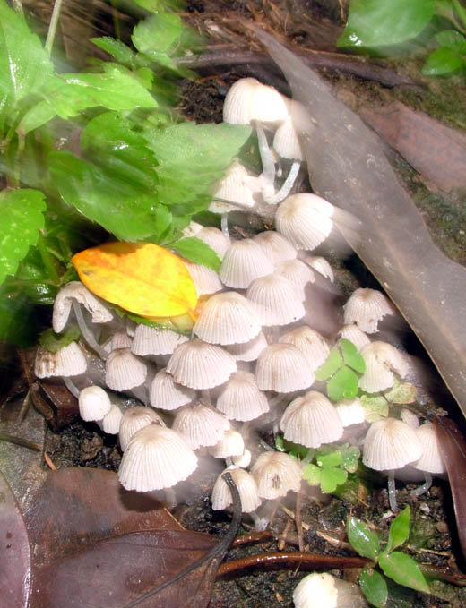我也拍了好多香菇的照片,「簇生鬼傘」「木耳」以前都有拍過,昨天我拍到的一種香菇,回家後我找書就找到啦!是「蟻巢傘」,我也看到有螞蟻在旁邊,拔巴說「蟻巢傘」就是人家說的「雞肉絲菇」;吃起來會像在吃雞肉嗎?