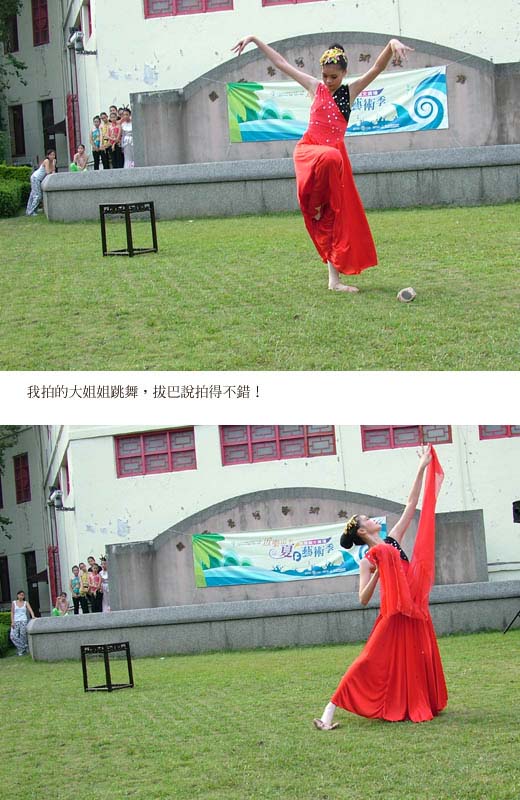 小非你把那個跳舞的姊姊拍得很好吔!很漂亮!讓人看了很有感覺。 - 3樓. 張念慈2006/08/20 11:21小菲長高了