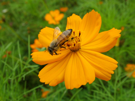 我就開始自己去拍花,看到好多的蜜蜂,我就去拍它,但好怕被蜜蜂叮到,拔巴在旁邊一直說一直說:「靠近一點,靠近一點!」我就靠得很近很近去拍照。拍蜜蜂很可怕喔!蜜蜂也到處亂飛亂飛,都很難拍到。