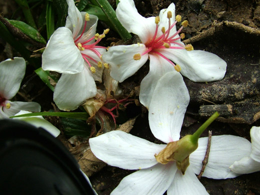 山上有好多的樹都開花了,是白色的,一直一直從樹上掉下來,拔巴說那是油桐花啦,我也把它拍了一張照片。然後我撿了好多花,往上面拋,好好玩!