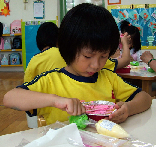 母親節快到了,今天上課的時候,我們就自己做蛋糕。那個蛋糕是真的,是真的可以吃的蛋糕喔!