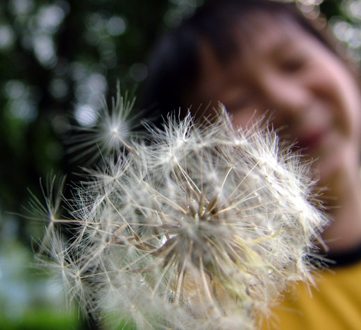 我就用嘴巴把它的種子用力吹走,但我有先許願,生日蛋糕吹蠟燭的時候,不是要先許願........。