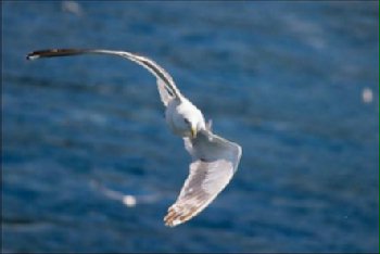 有一天, 我帶著女兒去長島一個清靜的沙灘, 看見一隻海鷗在覓食, 突然俯衝而下, 當他再度衝上天去的時候, 嘴裡已經銜了一個貝殼, 沒想到的是, 海鷗竟然對準沙灘的一塊巨石, 張開了口, 貝殼一擲而下, 應聲而碎, 祭了他的五臟廟, 我從來不知道海鳥這樣覓食, 所以一看見這樣飛翔的海鷗, 就想到那天!