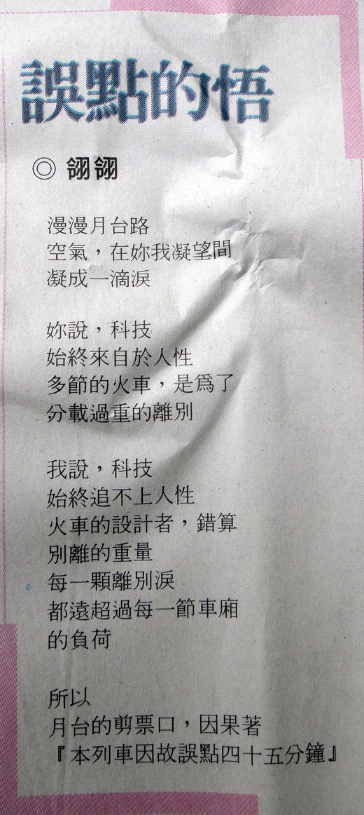 誤點的悟(感謝台灣時報2011/12/12)