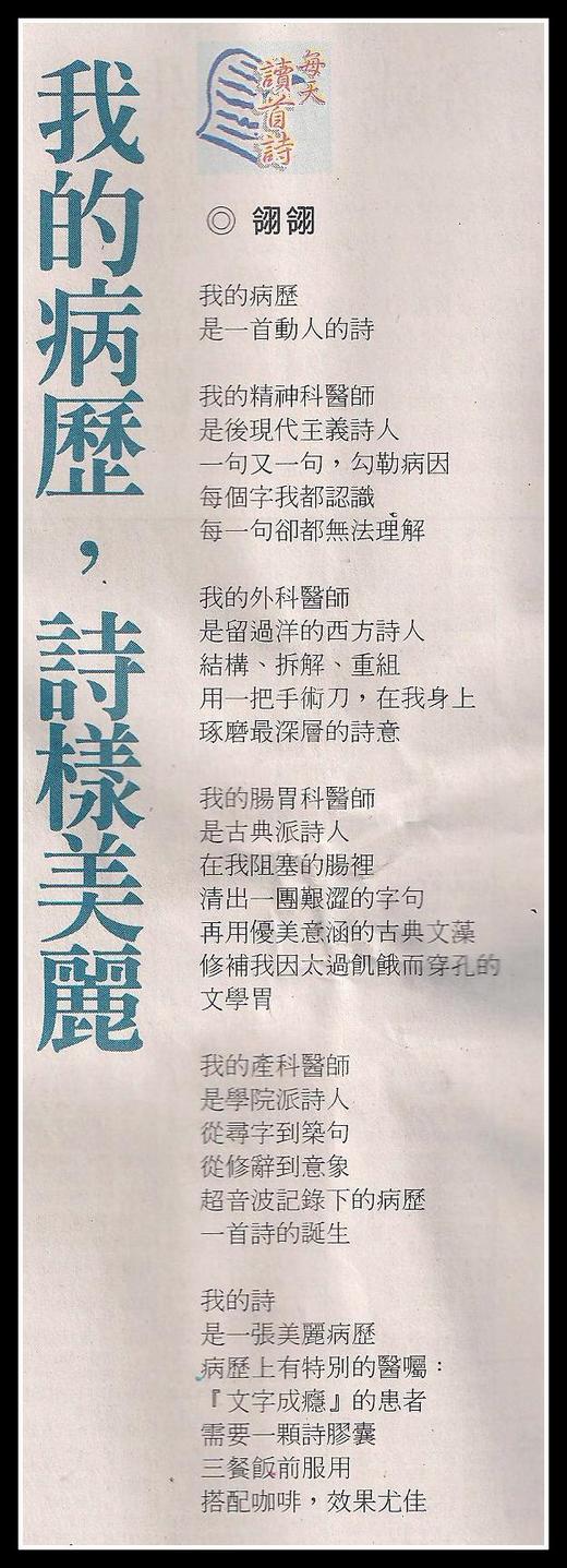 我的病歷,詩樣美麗(感謝台灣時報2012/01/09)