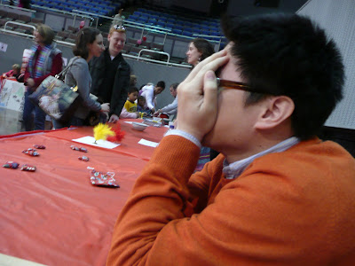 這次回來剛好趕上我們這個南方破鎮的中國華人商會辦的中國新年活動,照例,我們這裡的朋友又把我們抓去當義工,幫忙雇一個攤位。這個活動每年都會舉辦,去年我也有湊到熱鬧,也是去幫忙顧攤位,我們的攤位是童玩類,就是有扯鈴,陀螺,沙包,象棋,毽子,圍棋 ,還有麻將喔!去年我們還有示範打麻將給外國人看(其實是大家都愛玩啦!