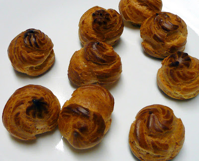 泡芙出爐囉!第一次的成品超小的,很像義美的迷你泡芙,第二次出爐的泡芙就大多了,這樣才吃的過癮啦!(左:超迷你泡芙,右:正常size的泡芙)
