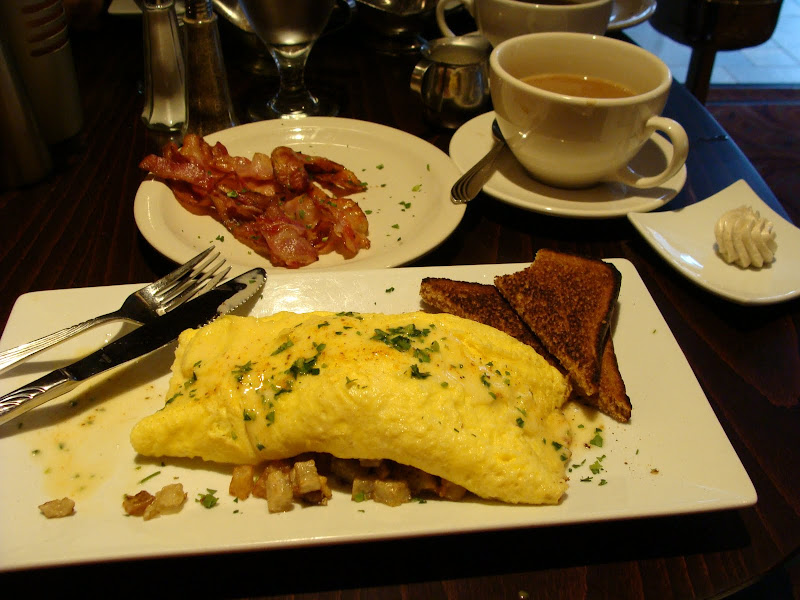 大狗點的是裡面包有蟹肉的Omelet加上香煎培根,豪華到不行! 小恐龍我有偷吃了幾口,還真是不錯,一口咬下去就吃得到蟹肉的原味,真的像是可以摸到海水的感覺呢!