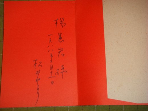 買舊書,有時候,會買到名人、朋友(甚至是自己)的藏書,這都是書在內容以外所提供的樂趣。前幾天,在舊書店買到已故日本朝日新聞資深記者、著名的進步社會運動人士松井耶依女士的著作《アジア.女.民衆》,翻開扉頁一看,竟是作者的題字「楊憲宏樣 一九八八年三月十一日 松井やより」。原來是廿年前松井贈給楊憲宏先生的書,如今不知何故,流入了舊書店。