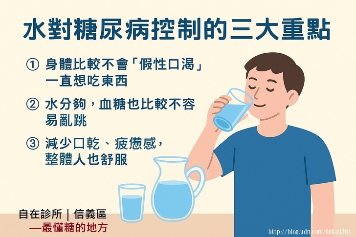 喝水不會直接降血糖,但能讓身體運作順一點、循環好一點,血糖自然比較不「暴走」。