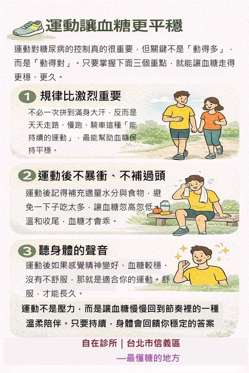運動不是壓力,而是讓血糖慢慢回到節奏裡的一種溫柔陪伴。只要持續,身體會回饋你穩定的答案。