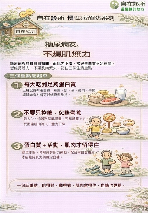 糖尿病與飲食息息相關,而肌力下降,常與蛋白質不足有關。