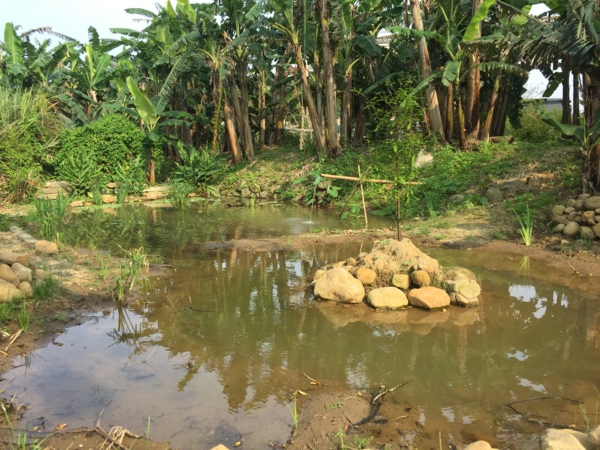 打通竹節,取代塑膠管,凌空高掛,水聲淙淙,似乎是當年阿嬤家的後院印象,再過些日子,鳶尾花開,野薑花流竄,期待另一番景致