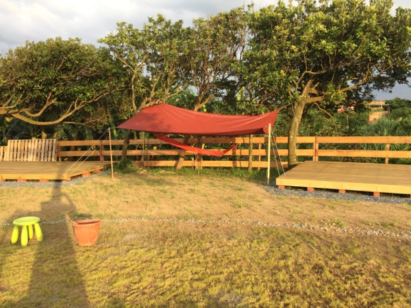 在某個巷口,從某家丟棄的資源回收項目中,搶救來的吊床,堪用,搭上庫存許久的遮陽布,也能檔住鳥糞凌空而降,有效。