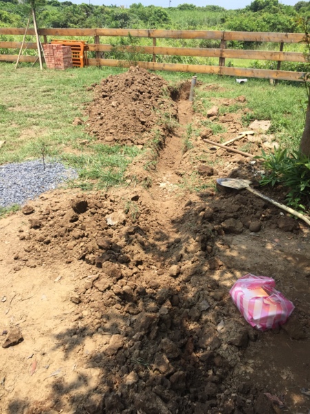 只有青春才頂得住艷陽,鳥地方前的衝浪學院自從7月初風風光光啟用之後,門前小路迎來數以百計的青年學生參加衝浪營隊,興高采烈,喧嘩聲不絕於耳,牆後,有一個糟老頭,抬頭有如蒼狗的雲朵輕輕飄過,低頭,則是揮汗如雨,奮力耙溝,估計個把月後,眾親朋好友,就可以輕鬆淋浴解放囉。